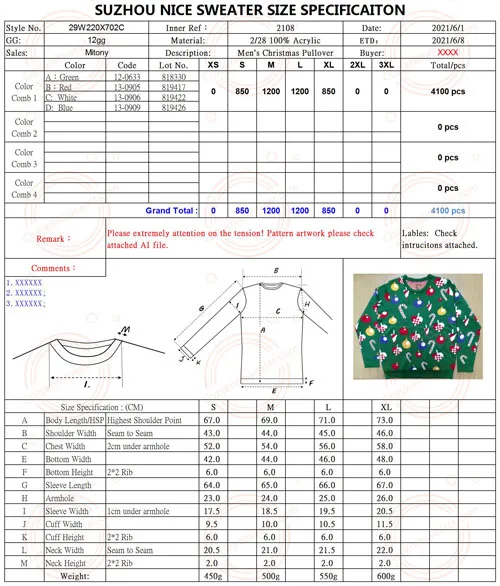 ¡Contáctenos para obtener más especificaciones de tamaño estándar de Jerséis de Navidad personalizados para diferentes edades y mercados!