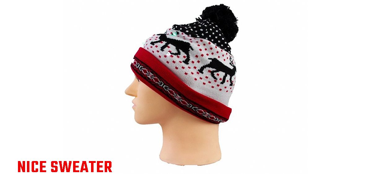 Chapéu feito malha do Natal da luz macia do diodo emissor de luz do teste padrão acrílico da rena do inverno para o adulto