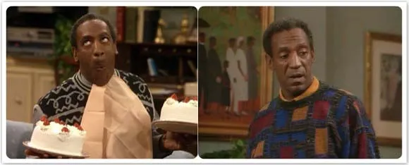En ese momento, había un ícono de la moda del suéter navideño, el famoso Bill Cosby. Cosby es un famoso comediante y actor afroamericano en los Estados Unidos. Actuó en [The Cosby Show] y fue el portavoz de Eastman Kodak, Ford y Coca-Cola.